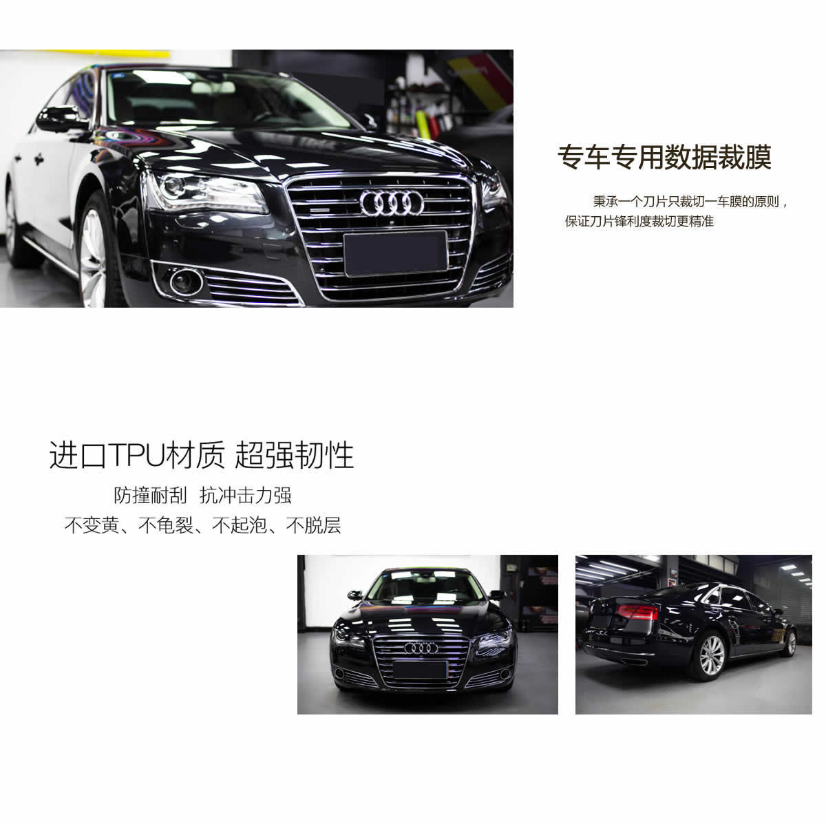 奥迪A8贴菲林车衣漆面膜效果